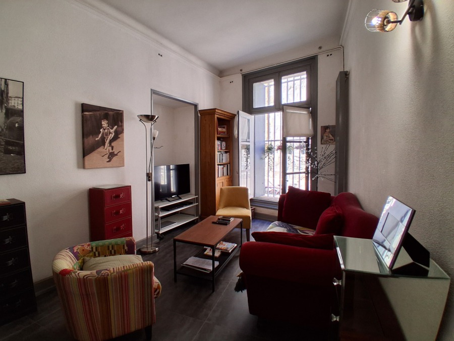 Appartement idéalement situé, proches de tout les centres d'intérêts du centre ville. L'appartement est ainsi agencé :